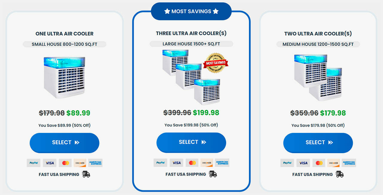 You can buy an Ultra Air Cooler online only through the official website. The company is giving discounts and other offers on selected packages. A single unit can cool an 800-1200 sq. ft room.