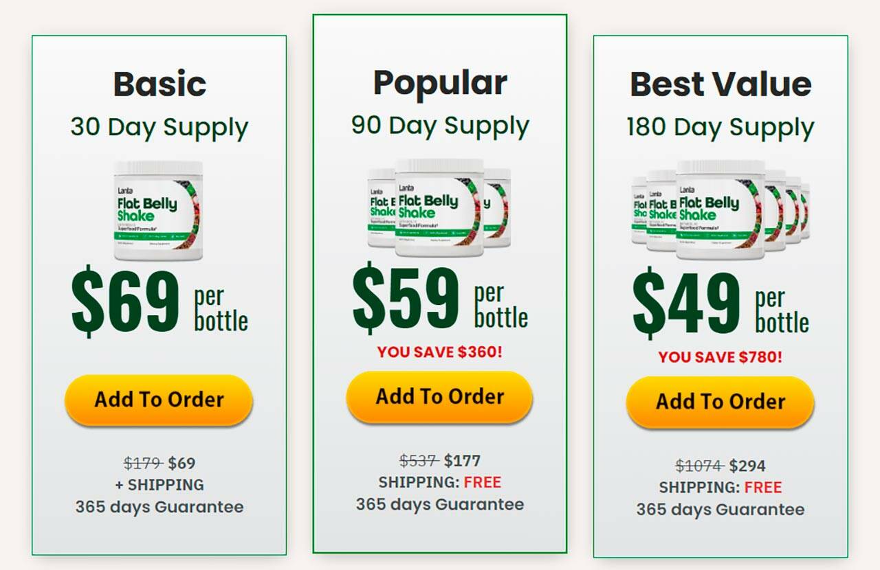 You can purchase genuine Lanta Flat Belly Shake only via their official website. The more Lanta bottles you buy, the better the discounts you get. In addition, the manufacturer is particular this product will support weight loss. Therefore, each bottle comes with a 365-days money-back guarantee.