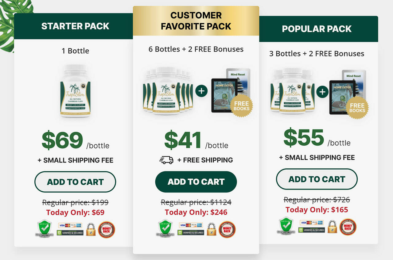 2. 3-Bottle Package – $165: For those ready to make a commitment to their long-term wellness, the 3-bottle package offers both savings and an extended supply. With this package, you’ll receive three bottles of TropiSlim, providing you with a three-month supply. This option is perfect for those who want to fully immerse themselves in the transformative journey offered by TropiSlim.