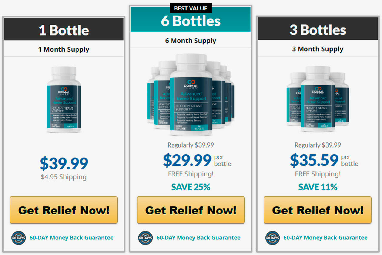 Advanced Nerve Support is exclusively available online through PrimalLabs.com. The supplement costs $69 per bottle and has a 180-day money-back guarantee.