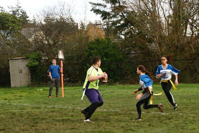 The only Saints loss of the season came on their first game VS Skagit in a mud bowl played at La Connor high school. This last week the team avenged that loss with a decisive 55-37 victory at home. Alexi Sprague, Alana Comrie and Skyler Gregg scored touchdowns extra points and played great defense. Next games are a seven-game championship tournament in Vancouver, British Columbia.