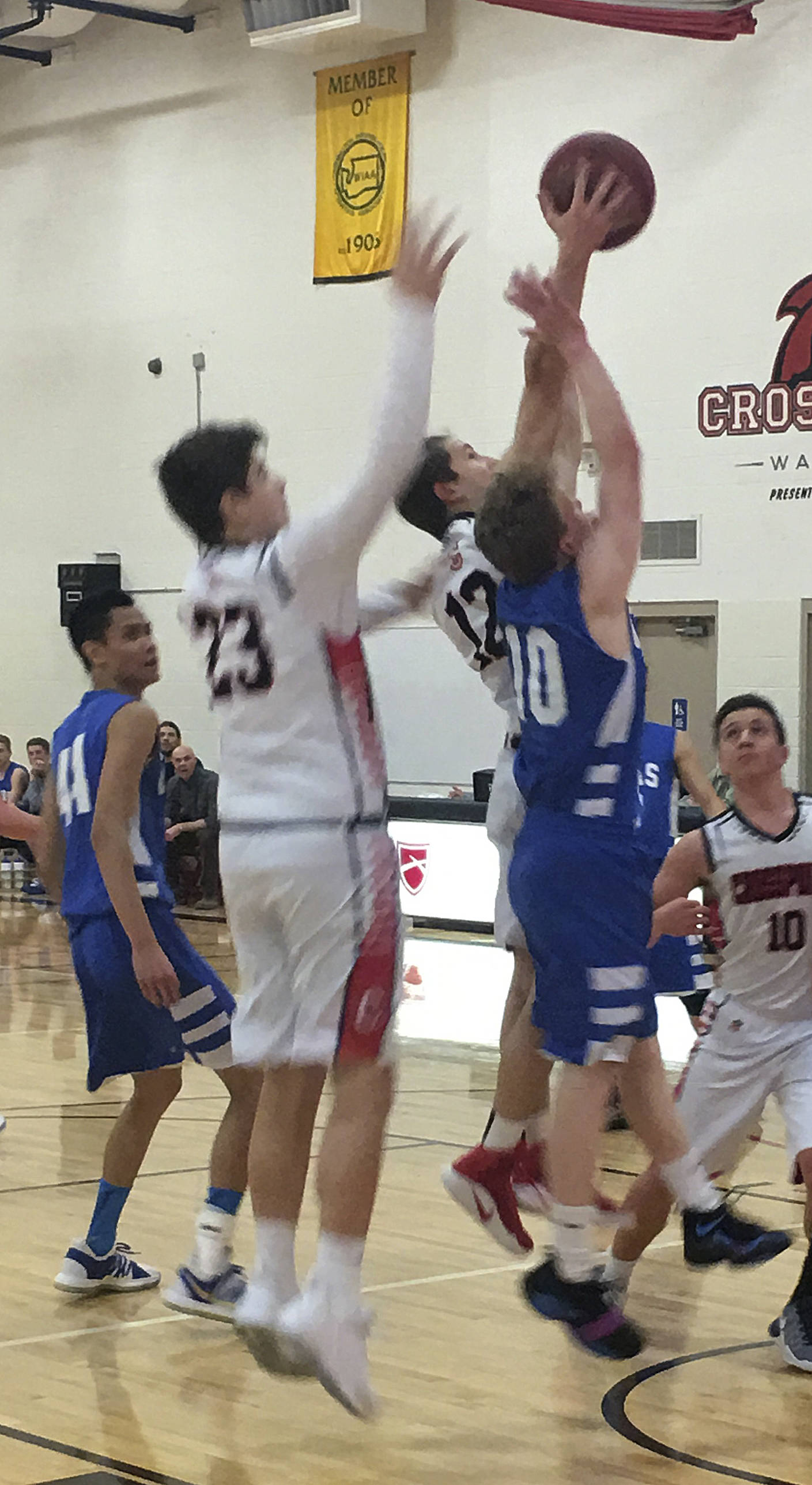 Crosspoint took the early lead in overtime, led by sharpshooter Jackson Kimmel and held it until, with four seconds left in OT, Vikings senior captain Vanya Bullock tied the game up at 76 apiece.