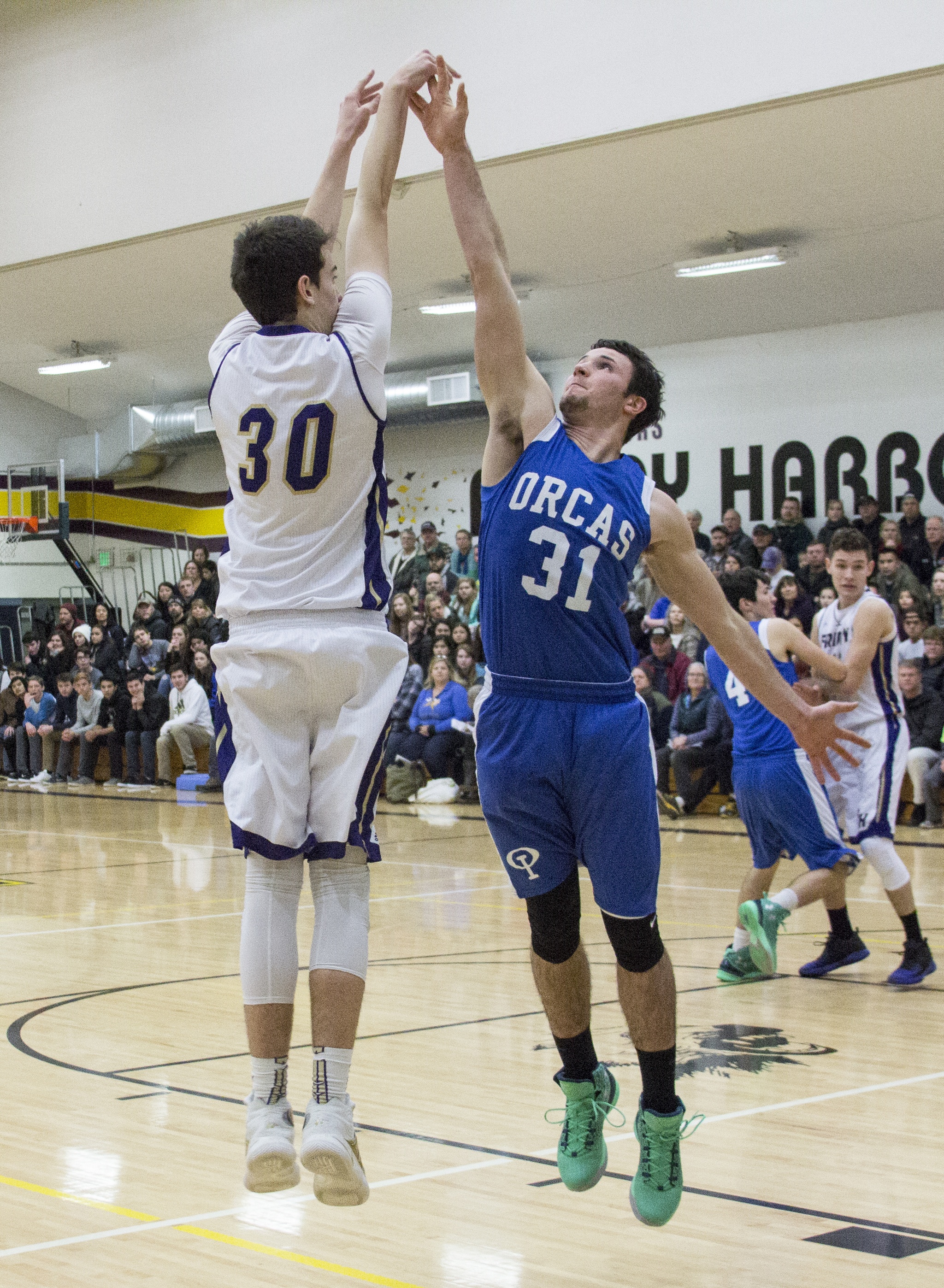 “Take two arch rival teams since before I was even born, stack them each with solid athletes and programs and then watch them play head-to-head for the top dog position in an electric down to the wire basketball game,” said Wiscomb. “What else could you ask for? It was a grind your teeth game from the beginning. Harlow and Kruse really got us started offensively in the first quarter while the whole team held to firm defense. Aidan really wasn’t feeling well, but got three big buckets early. Harlow hit a big three-point basket on the opening possession. Orcas finished the first quarter with a 16 to 9 lead. For us to hold a strong team like Friday Harbor to 9 points in a quarter is really something.”